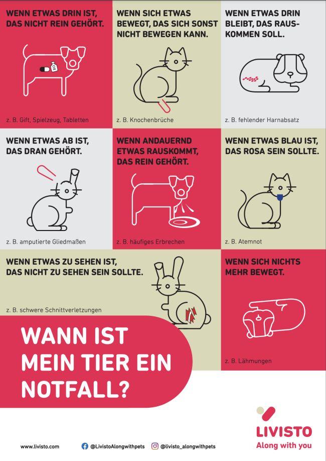 Geht es Ihrem Tier plötzlich sehr schlecht? In folgenden Fällen sollten Sie sich sofort an uns wenden.